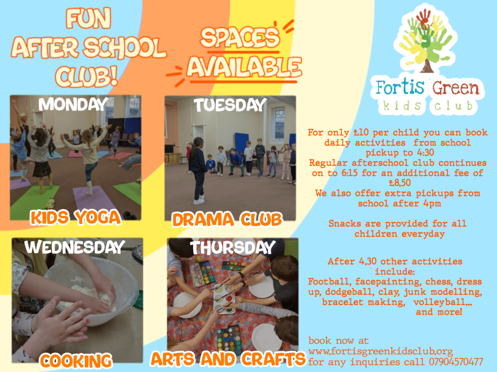 Fortis Green Kids’ Club is an out of school childcare provision (est. 1992) catering for children aged 4-11.